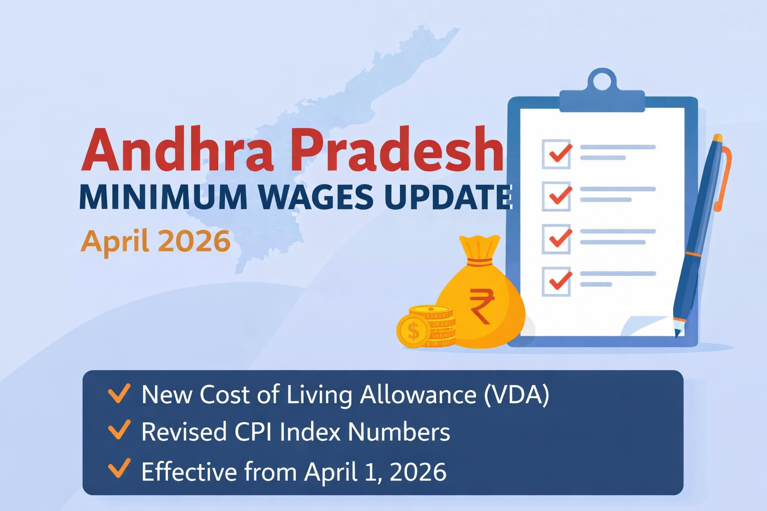 The Telangana Labour Department has revised minimum wages based on the latest Consumer Price Index (CPI). These revised wages are applicable from 01 April 2026 to 30 September 2026 and include Variable Dearness Allowance (VDA).